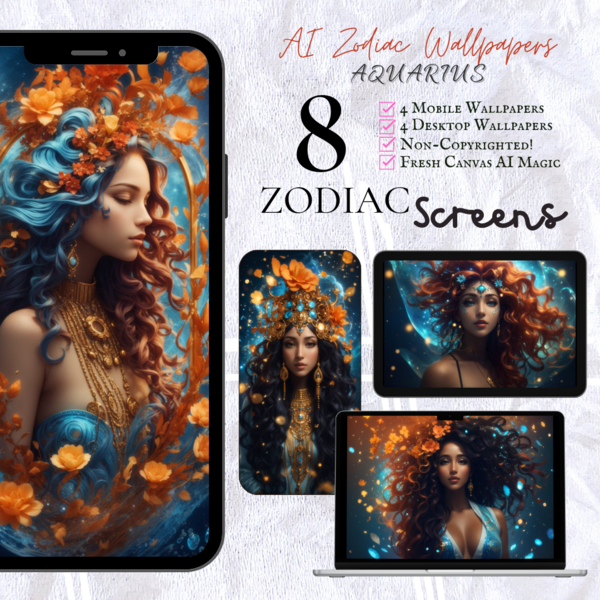 AI Zodiac Screens [Mobile & Desktop/Laptop]: Bundle of 8 Non-Copyrighted wallpapers - Aquarius!