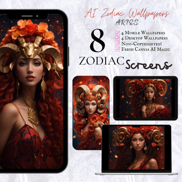 AI Zodiac Screens [Mobile & Desktop/Laptop]: Bundle of 8 Non-Copyrighted wallpapers - Aries!
