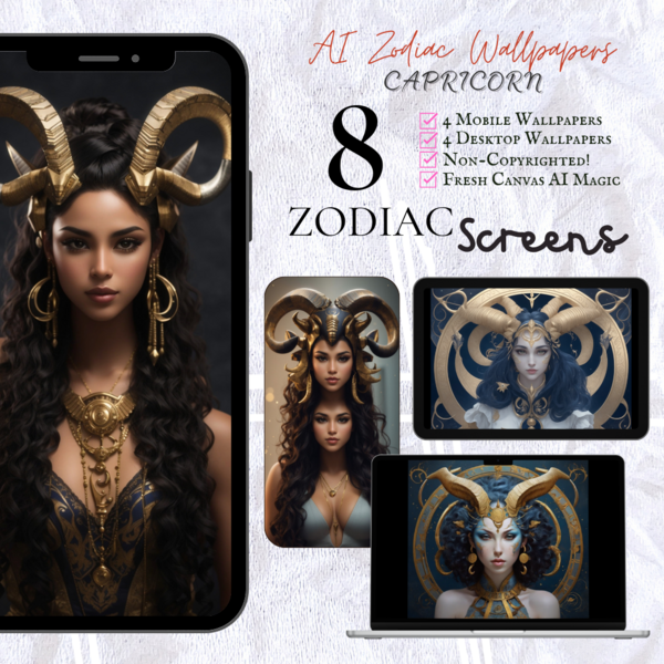 AI Zodiac Screens [Mobile & Desktop/Laptop]: Bundle of 8 Non-Copyrighted wallpapers - Capricorn!